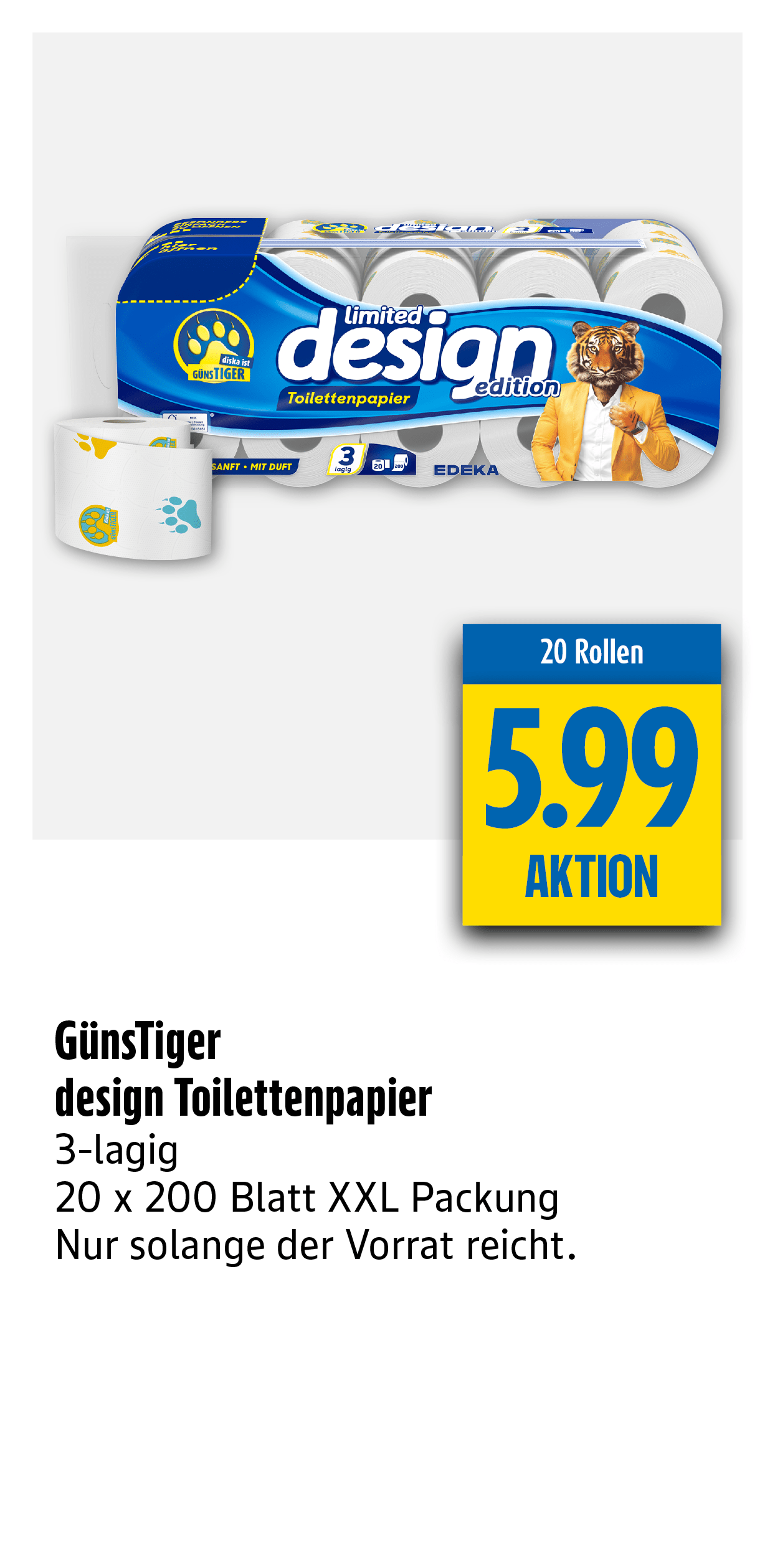 Der günsTIGER ist in nahen Gefilden von diska beheimatet und kann in den verschiedensten diska Märkten in seiner natürlichen Umgebung beobachtet werden – aufmerksam, fokussiert und stets auf der Jagd nach den besten Angeboten. Mit geschärftem Instinkt erspäht er jedes Schnäppchen, schleicht sich geschickt heran und schlägt blitzschnell zu. Denn für ihn zählt nur eines: fette Beute machen und dabei clever sparen!